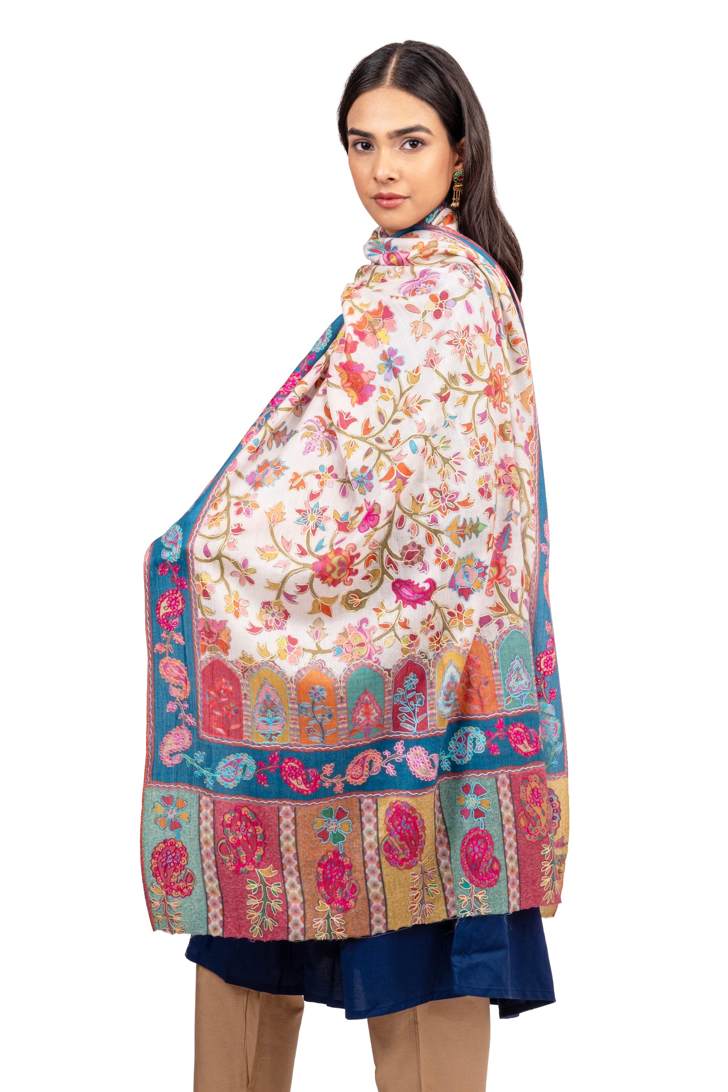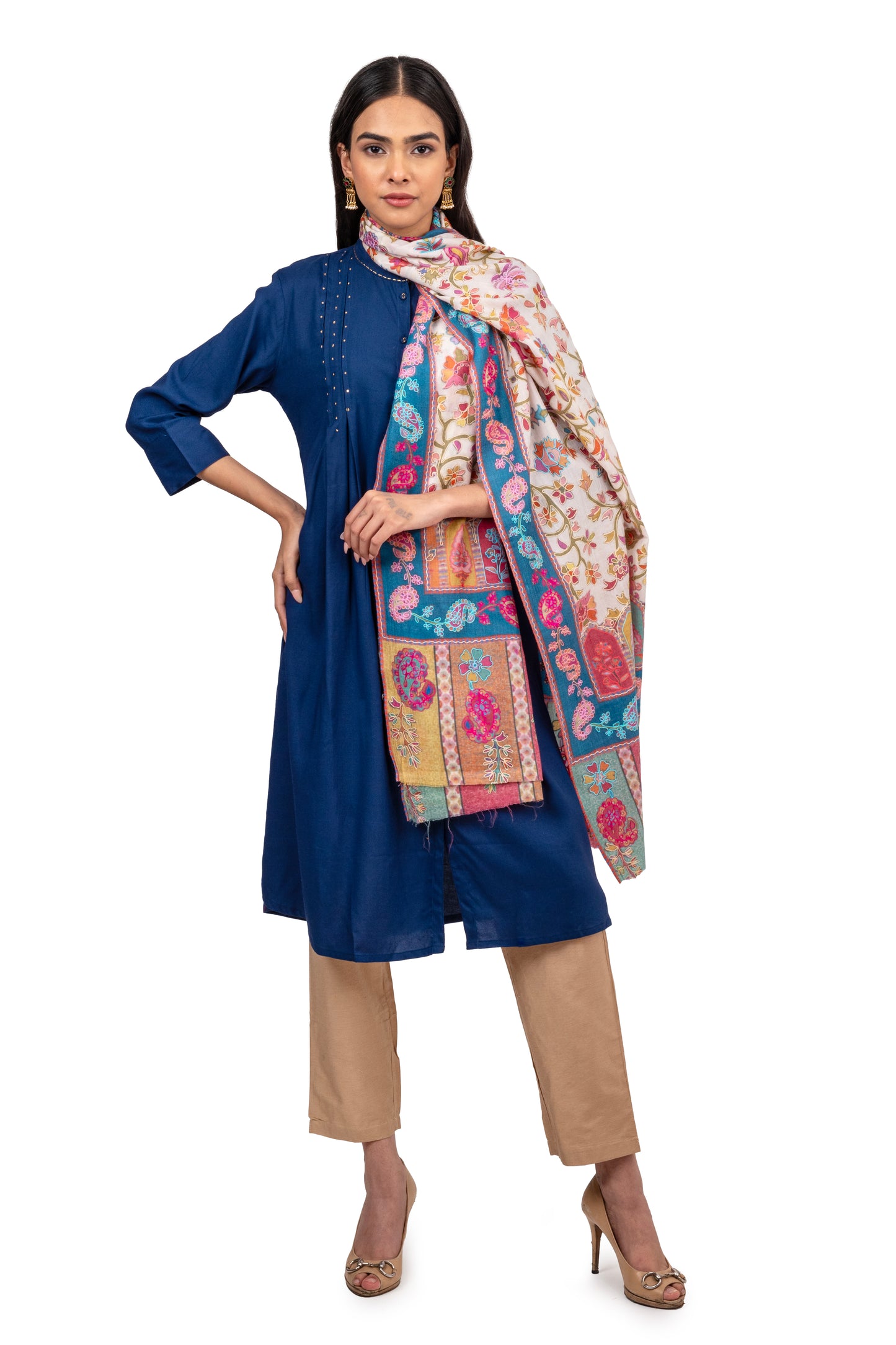 Expertly crafted by Kashmiri artisans, this Fine Wool Kalamkari stole is hand-painted and intricately embroidered, showcasing the perfect blend of tradition and elegance. Each piece takes days of dedication and craftsmanship, offering unmatched softness and warmth. Naureen proudly continues this traditional art, ensuring every stole is a masterpiece. Whether for a formal occasion or a casual day out, this versatile stole adds a timeless charm to your look, making it a standout accessory for every season.