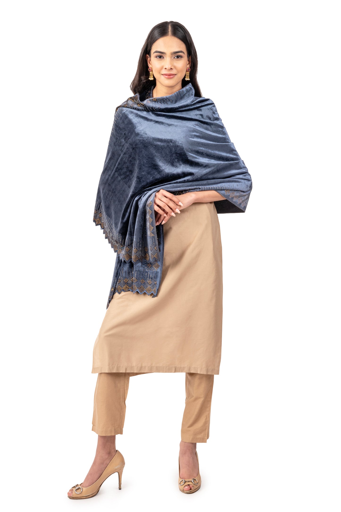 This luxurious velvet stole embellished with shimmering crystals is designed to make a statement. Available in classic and vibrant colors, its ultra-soft texture and elegant sparkle make it perfect for weddings, parties, and even casual outings. A must-have accessory to elevate any outfit and turn heads wherever you go.